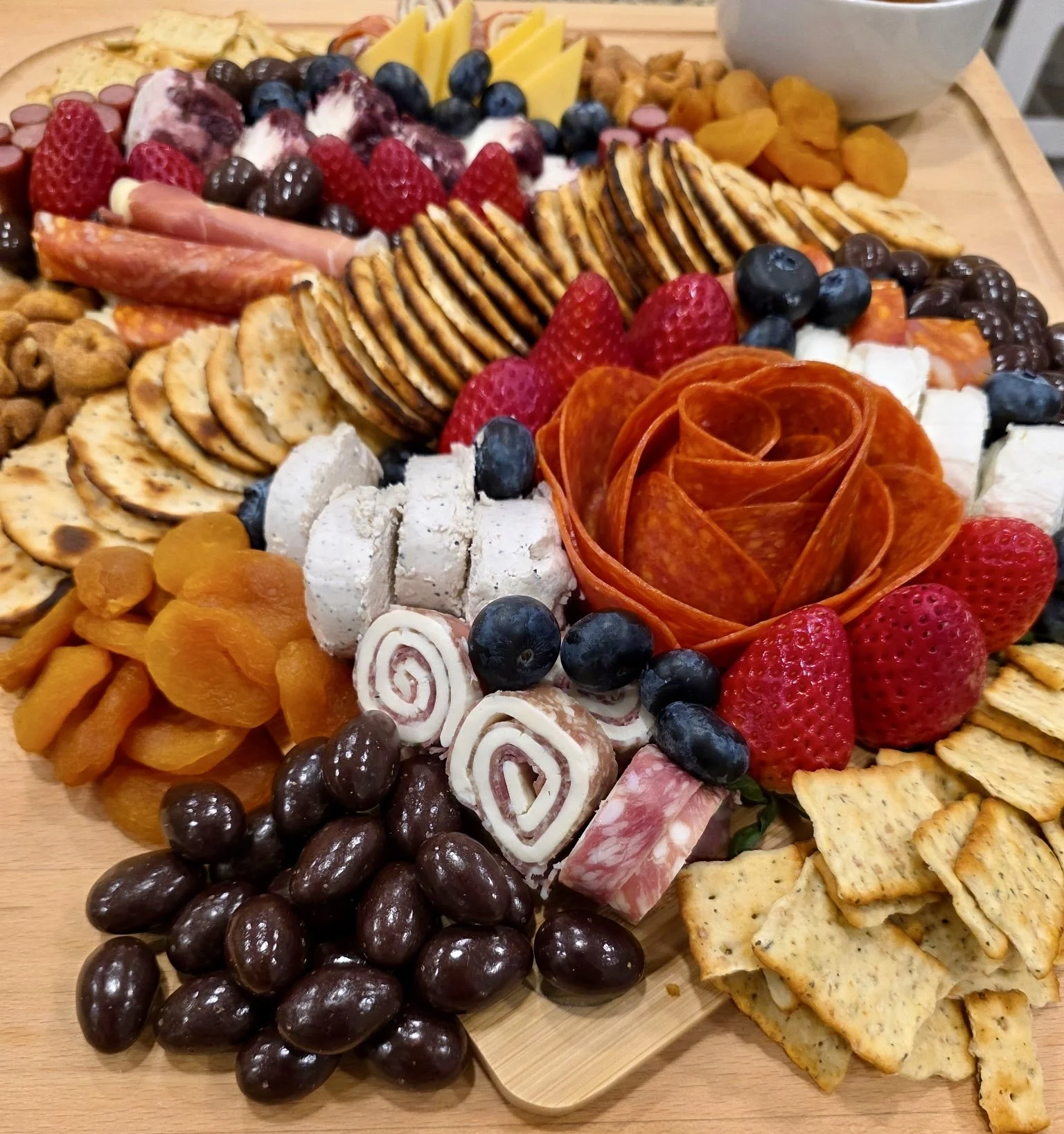 Description: A generous spread with elevated cheeses, curated charcuterie, seasonal fruits, nuts, pickled accents, and sweet touches. Perfect for showers, parties, and celebrations.